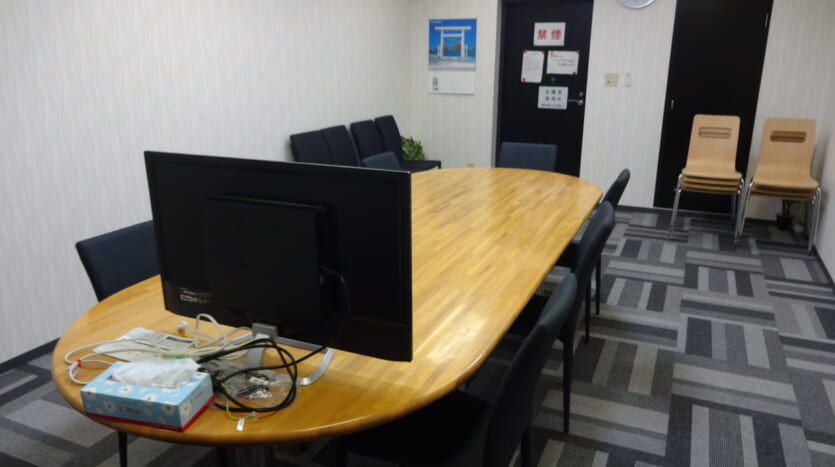 小人数での会議、セミナー等にお使いください。 テレビモニター有り 20時まで使用可