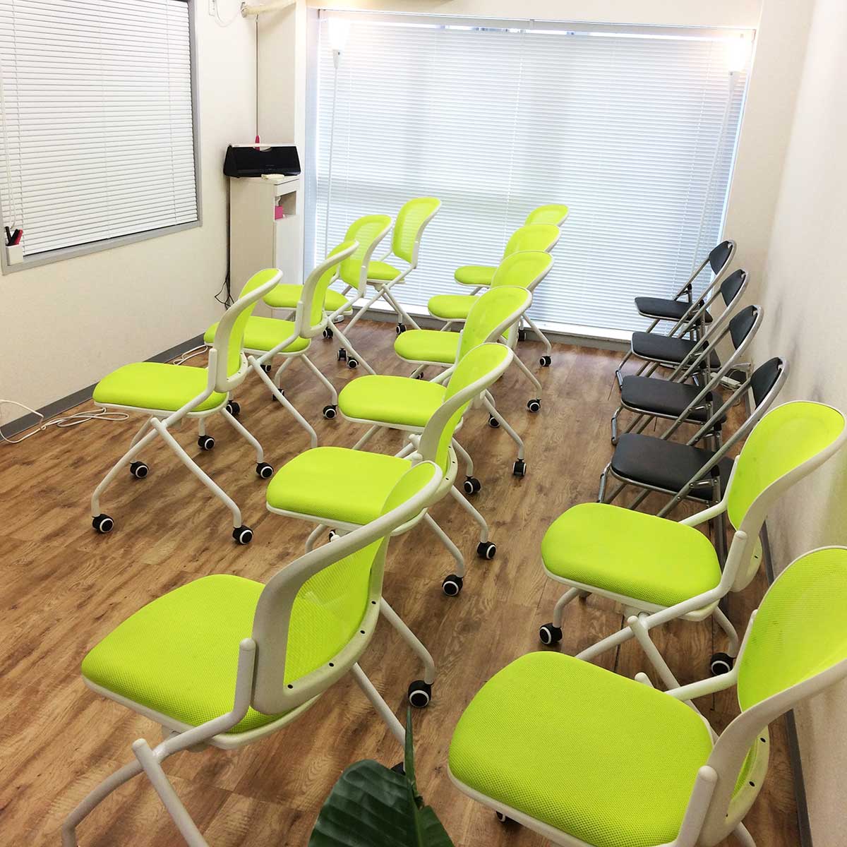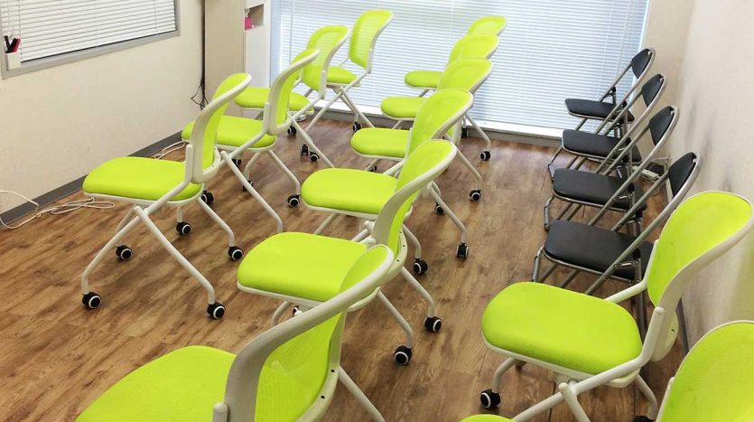 長机や椅子は折り畳むことができますので、お客様の利用目的に合わせてレイアウトを変更することができます。